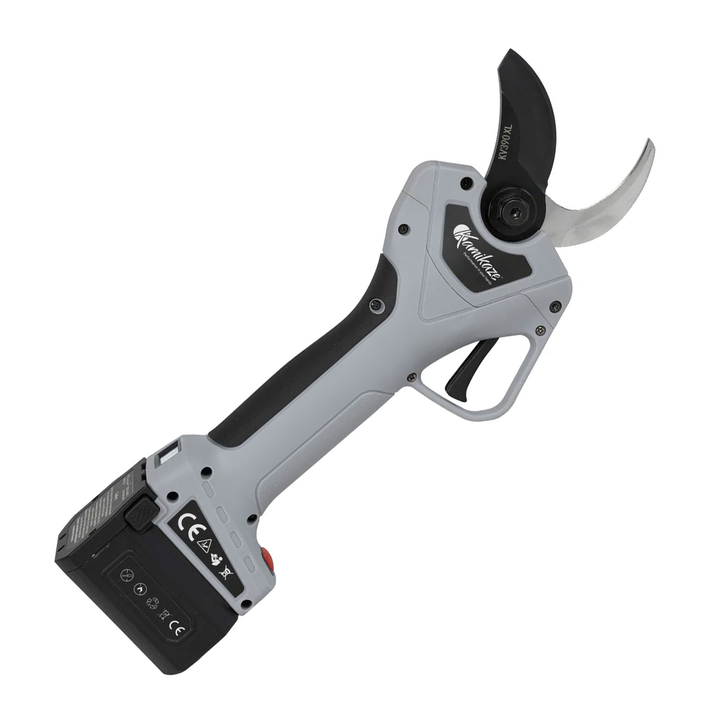 La tijera eléctrica KV 390 para uso profesional, tiene 1,24 kg de peso y una autonomía de 3-4 horas por batería. Dispone de pantalla inteligente y 2 baterías incluidas. Recomendada para su utilización en viña y árboles frutales de madera blanda. Diámetro de corte de 40 mm.